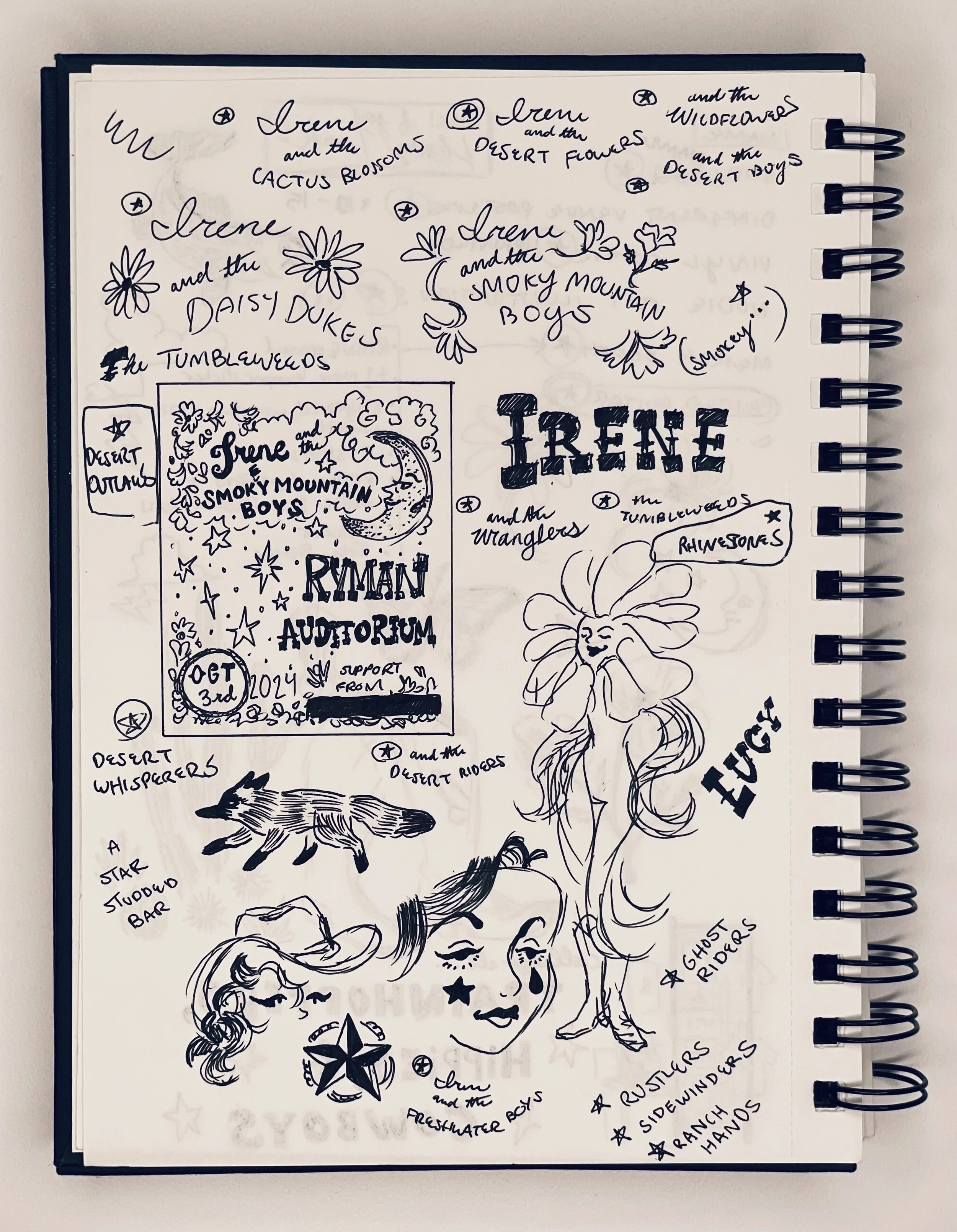 I kept a small sketchbook dedicated to this project. It was there I did most, if not all of my conceptualizing, from themes and imagery, to the name of the band itself.