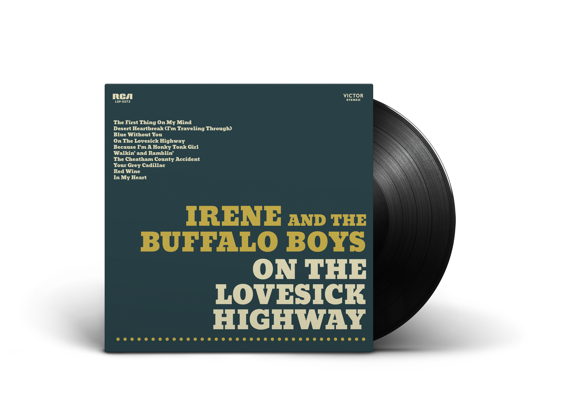 I created two vinyl album sleeves and mocked them up physically for the gallery space. I wanted the front and back design and layout to reference the album art of classic country records from the 60’s and 70’s. It was also important to me to incorporate a spine and an RCA logo to make it feel as believable as possible. In the process of making these, I had a lot of fun doing hands on research with numerous old country records.